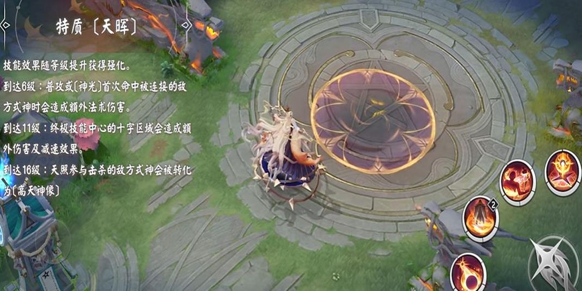 1、特質(zhì)天暉隨等級(jí)強(qiáng)化,6級(jí)時(shí)普攻或一技能首次命中被連接敵方式神,額外造成法術(shù)傷害且隨連接傳遞,11級(jí)時(shí)終極技能中心有處刑十字,16級(jí)時(shí)參與擊殺的式神轉(zhuǎn)化為高天神像。