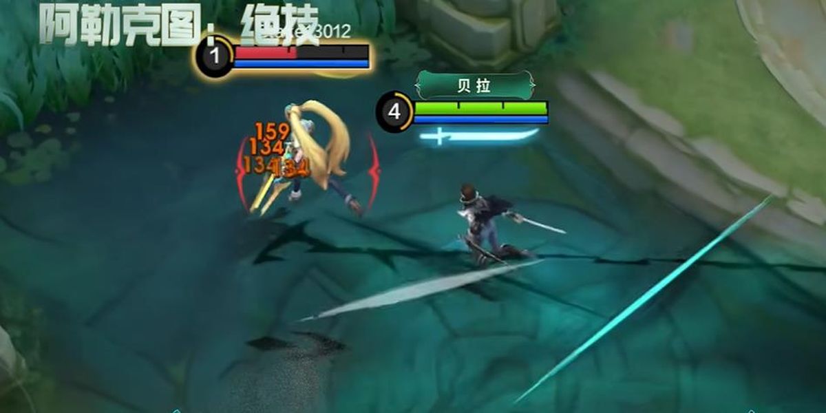 4、三技能阿勒克圖絕技,貝拉向前瞬身閃進(jìn),位移時(shí)無敵,延遲后對(duì)路徑目標(biāo)造成傷害并減速,追擊或脫離戰(zhàn)場(chǎng)均能發(fā)揮作用。