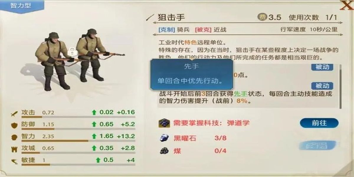 2、主技能傾國傾城堪稱戰(zhàn)場利器,能同時(shí)控制三名敵人并大幅降低其攻擊距離,效果類似繳械和沉默,可有效限制敵人輸出能力,工業(yè)時(shí)代搭配狙擊手兵種能解決出手慢的問題。
