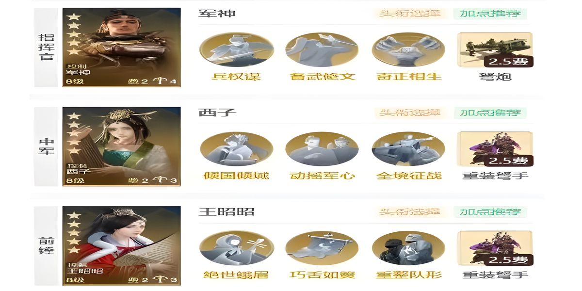 3、與軍神、王昭昭組成的法傷隊(duì)伍極具威脅性,戰(zhàn)斗時(shí)先由西子發(fā)動(dòng)控制技能,軍神隨后施加增傷效果,王昭昭進(jìn)場收割并附加混亂狀態(tài),這套組合完美,能讓敵人毫無還手之力。
