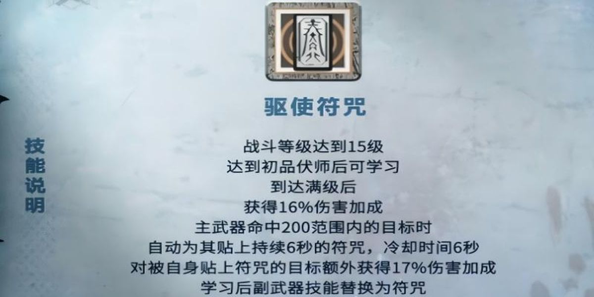 3、高品階段借力打力在反擊時附加弱體符咒,增加目標受到的傷害,迅疾如風(fēng)提升7%移動速度,大幅增強伏師在戰(zhàn)場上的機動性。