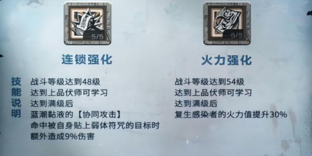 4、上品階段連鎖強化讓藍潮黏液的攻擊附帶弱體符咒效果,火力強化提升復(fù)生感染者的火力值,使召喚物戰(zhàn)斗力更強。