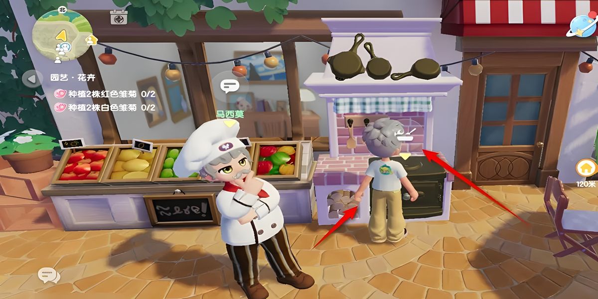 1、制作詭異的飲料需以咖啡為原料,玩家要找到灶臺,若找不到在地圖上尋找馬西莫,找到后將咖啡放入灶臺烹飪,過程會出現(xiàn)火候不穩(wěn)定提示,切記不要點擊鏟子圖標調(diào)整火候。