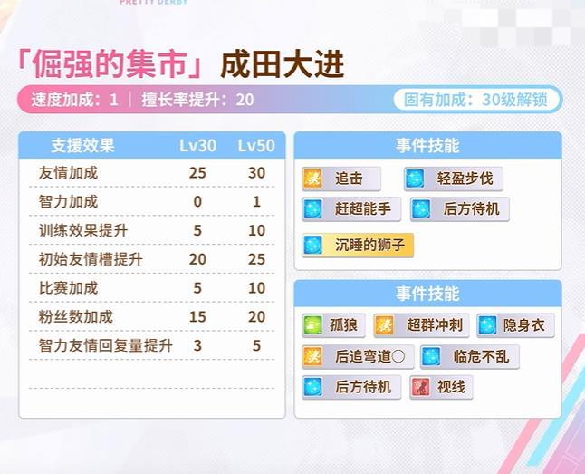 2、在屬性培養(yǎng)方面,速度和體力最為重要,速度決定基礎跑速,體力保證比賽保持穩(wěn)定發(fā)揮,力量和智力可適當提升,但無需投入過多,輔助技能體力回復,對中長距離比賽重要。