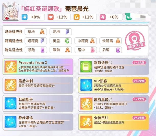 4、培養(yǎng)琵琶晨光需注重速度和體力的平衡發(fā)展,同時合理搭配技能,只要掌握好這些要點,這位一星馬娘就能在賽場上大放異彩,在中長距離草地比賽中展現(xiàn)出強大的實力。