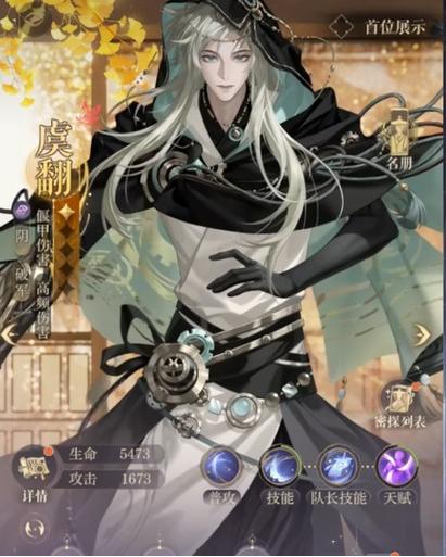 如鳶是一款以三國為背景的策略卡牌作品,融合了角色養(yǎng)成、戰(zhàn)術搭配等多種玩法,玩家可通過收集和培養(yǎng)密探角色組成隊伍參與戰(zhàn)斗,其中虞翻是登場的全新陰屬性密探,憑借獨特技能機制和持續(xù)輸出能力為戰(zhàn)斗帶來新戰(zhàn)術選擇,下文將詳細介紹其技能特點,助力玩家了解這位角色。
