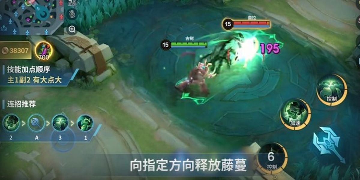 2、主動(dòng)技能古樹之力向指定方向釋放蔓藤,對(duì)路徑敵人造成傷害,短暫延遲后再次爆炸造成額外傷害并附帶嘲諷效果,適合控制敵人為團(tuán)隊(duì)創(chuàng)造優(yōu)勢(shì)。