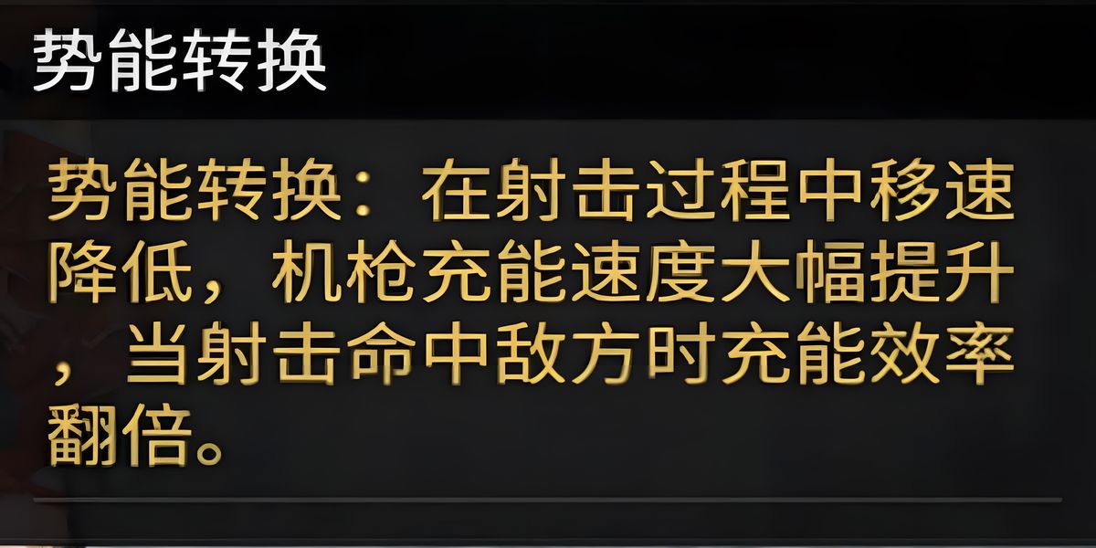 2、電磁槍射擊時會犧牲部分移動速度換取充能效率提升,命中目標(biāo)后充能效果還能翻倍,這種設(shè)計讓機(jī)槍在站樁輸出時更快積攢能量,為后續(xù)爆發(fā)做準(zhǔn)備。
