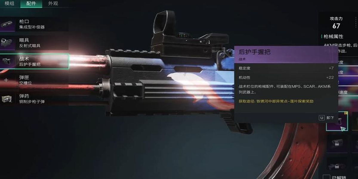 3、后護(hù)手握把最適合安裝在突擊步槍和沖鋒槍這類穩(wěn)定性較高的武器上,能最大限度發(fā)揮其性能提升效果,幫助玩家在戰(zhàn)斗中更精準(zhǔn)地攻擊目標(biāo)。