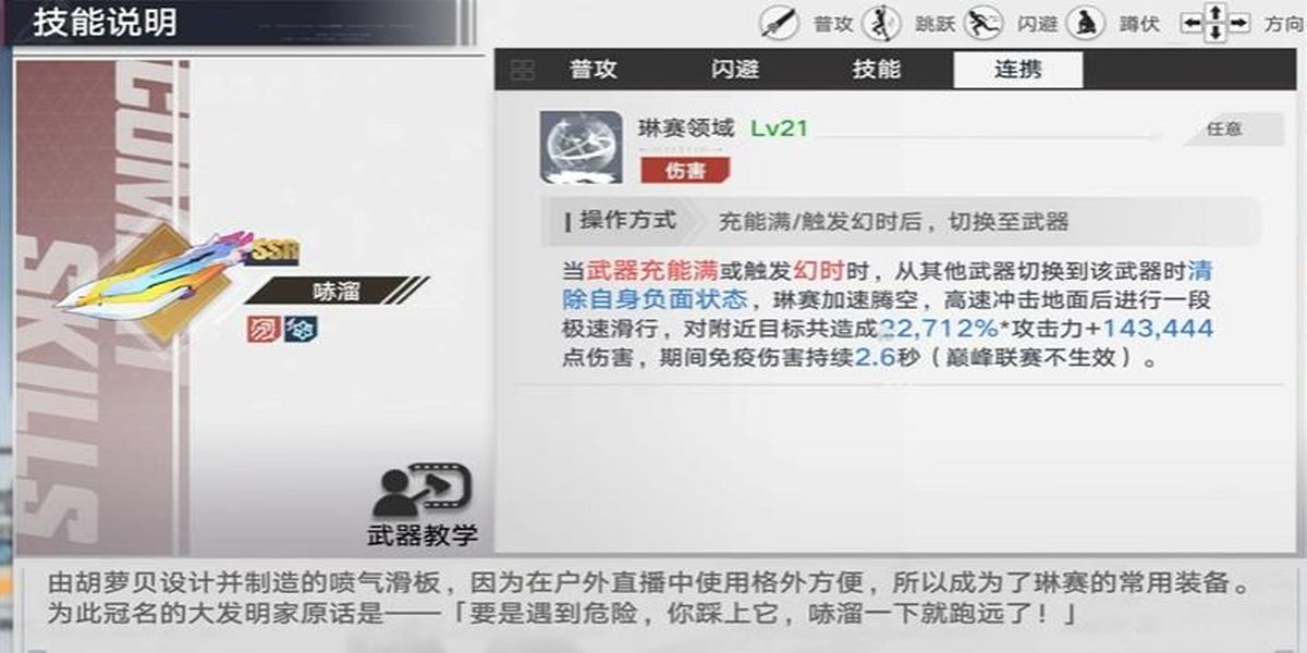 4、連攜技能琳賽領(lǐng)域可清除負(fù)面狀態(tài)并快速騰空滑行,既能躲避攻擊又能迅速接近敵人,配合下落攻擊的方向調(diào)整能力,使她在戰(zhàn)場上擁有極高機(jī)動性和靈活性。