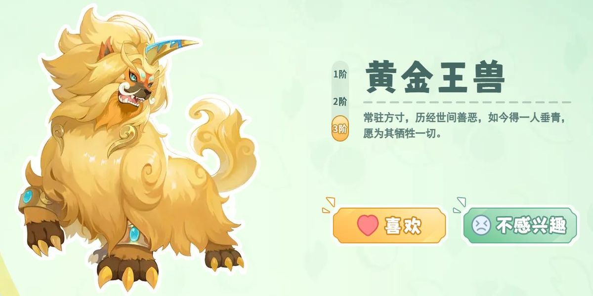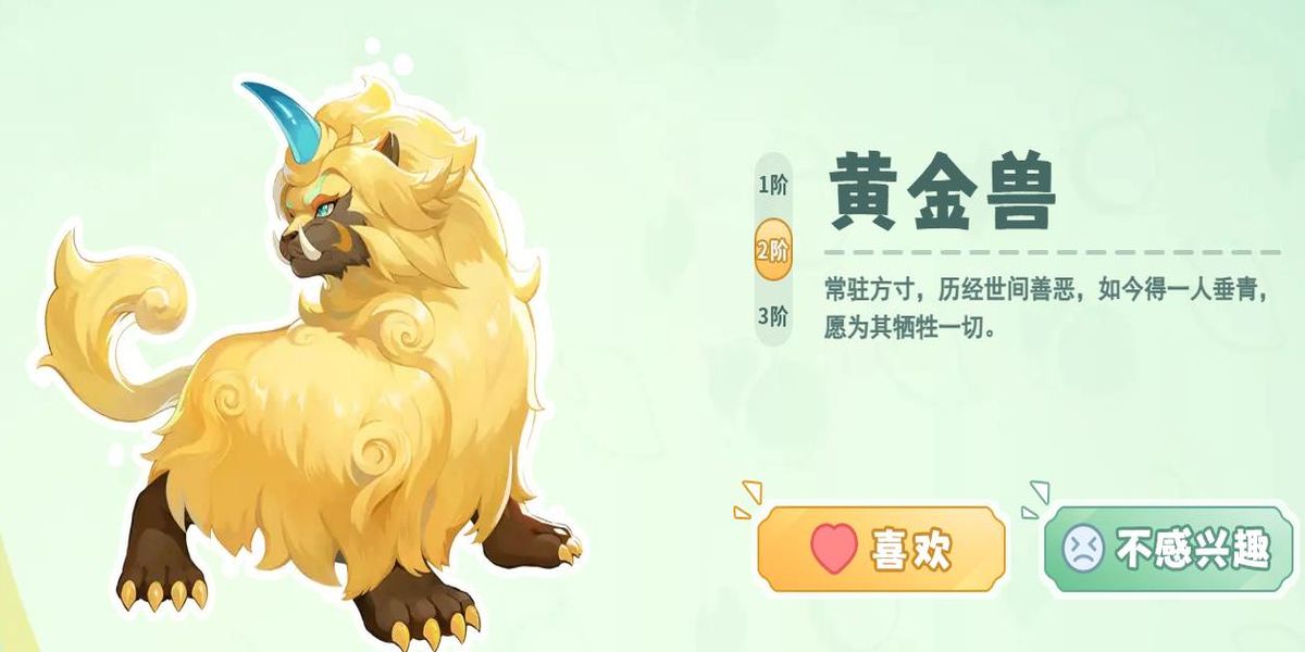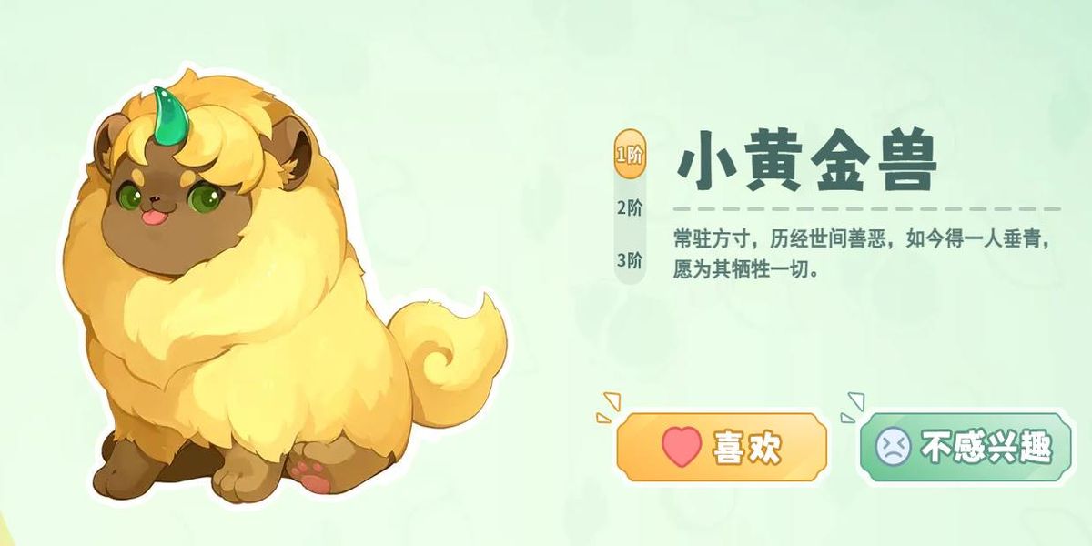 靈獸大冒險是一款以靈獸收集養(yǎng)成和冒險探索為核心的作品,在這個充滿奇幻色彩的世界里,玩家可以邂逅各種各樣的靈獸,與它們一同踏上冒險征程,通過培養(yǎng)靈獸提升實力,挑戰(zhàn)強(qiáng)大的敵人,解鎖更多精彩的劇情,小黃金獸作為其中備受關(guān)注的靈獸之一,其階位信息是許多玩家想要了解的內(nèi)容,下文將詳細(xì)介紹相關(guān)情況。
