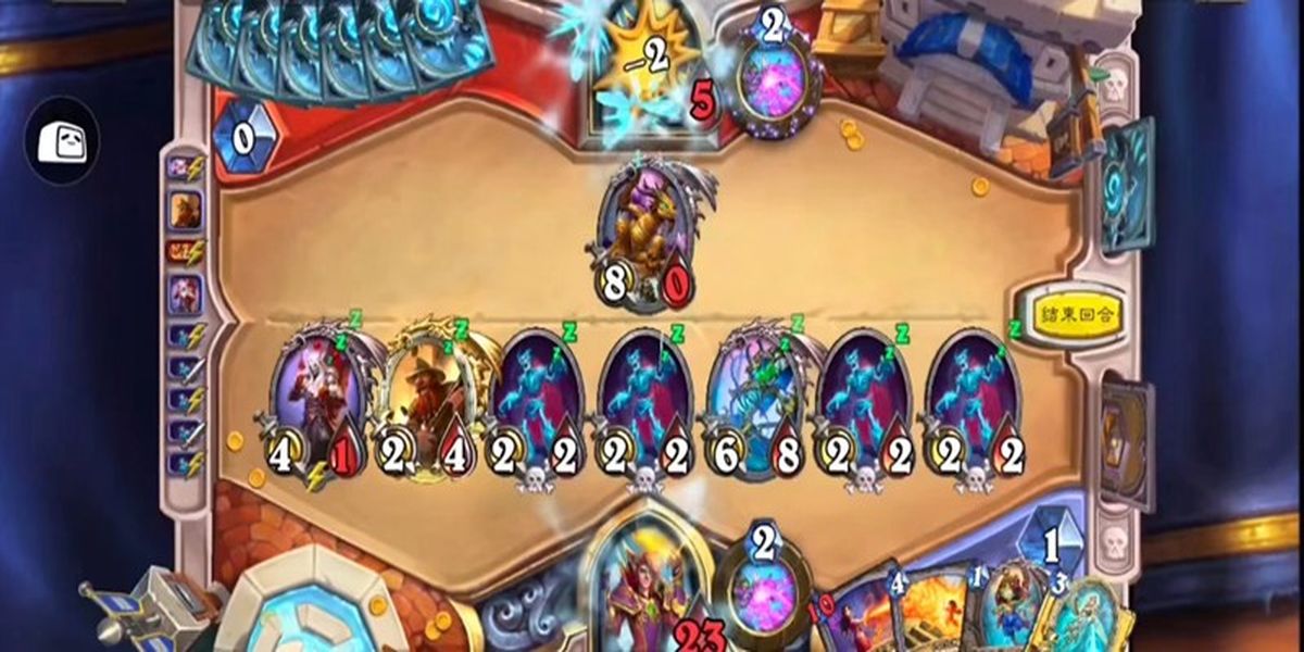 3、實(shí)戰(zhàn)注意起手留牌策略,業(yè)火和召喚骷髏等低費(fèi)牌盡量保留,避免關(guān)鍵牌沉底影響節(jié)奏,前期解場和送骷髏,場面壓力大時(shí)用冰風(fēng)暴爭取時(shí)間,骷髏積累到一定數(shù)量后進(jìn)入強(qiáng)勢期。