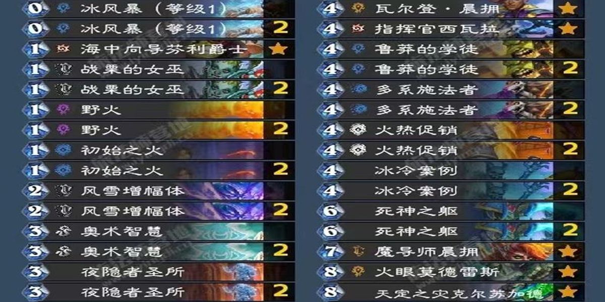 2、構(gòu)筑上除核心外加入冰冷案例夜隱者圣所等強(qiáng)力新卡,卡牌間產(chǎn)生奇妙化學(xué)反應(yīng)使卡組強(qiáng)度達(dá)當(dāng)前版本T0級別,還保留部分火沖法經(jīng)典搭配思路,差異主要在部分單卡選擇。