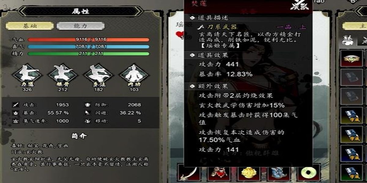 1、焚蓮是瑤姬專屬的裝備道具,專門為NPC角色瑤姬設(shè)計,玩家成功招募瑤姬加入隊伍后,裝備焚蓮可提升她的戰(zhàn)斗能力,因隊伍人數(shù)限制選其他角色為主力時,實用價值相對降低。
