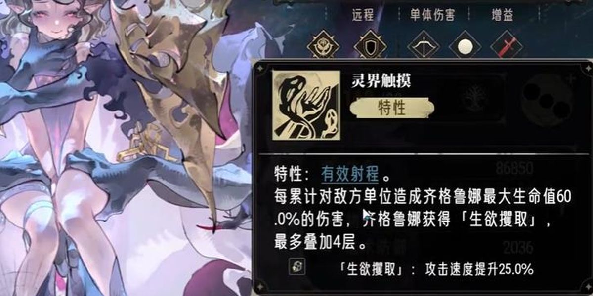 2、靈界觸摸讓齊格魯娜的攻擊不受距離限制,敵人在射程范圍內(nèi)就能命中,攻擊次數(shù)增加會(huì)使生欲搜取層數(shù)不斷疊加,進(jìn)而提升攻擊速度,讓她在持久戰(zhàn)中擁有更強(qiáng)爆發(fā)能力。