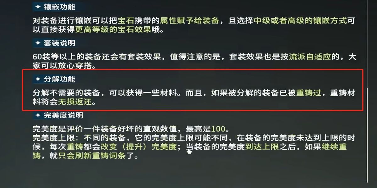 3、分解后裝備無法恢復,需查看屬性確保不分解需要的,已穿戴裝備不會出現(xiàn)在備選欄,有保護機制,重鑄過的裝備分解會返還重鑄資源,減少消耗。