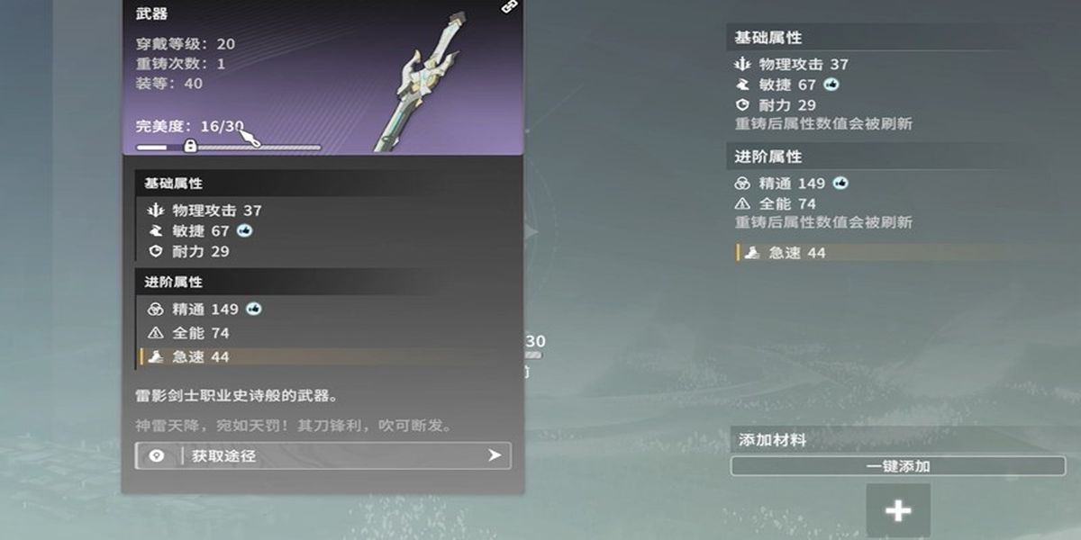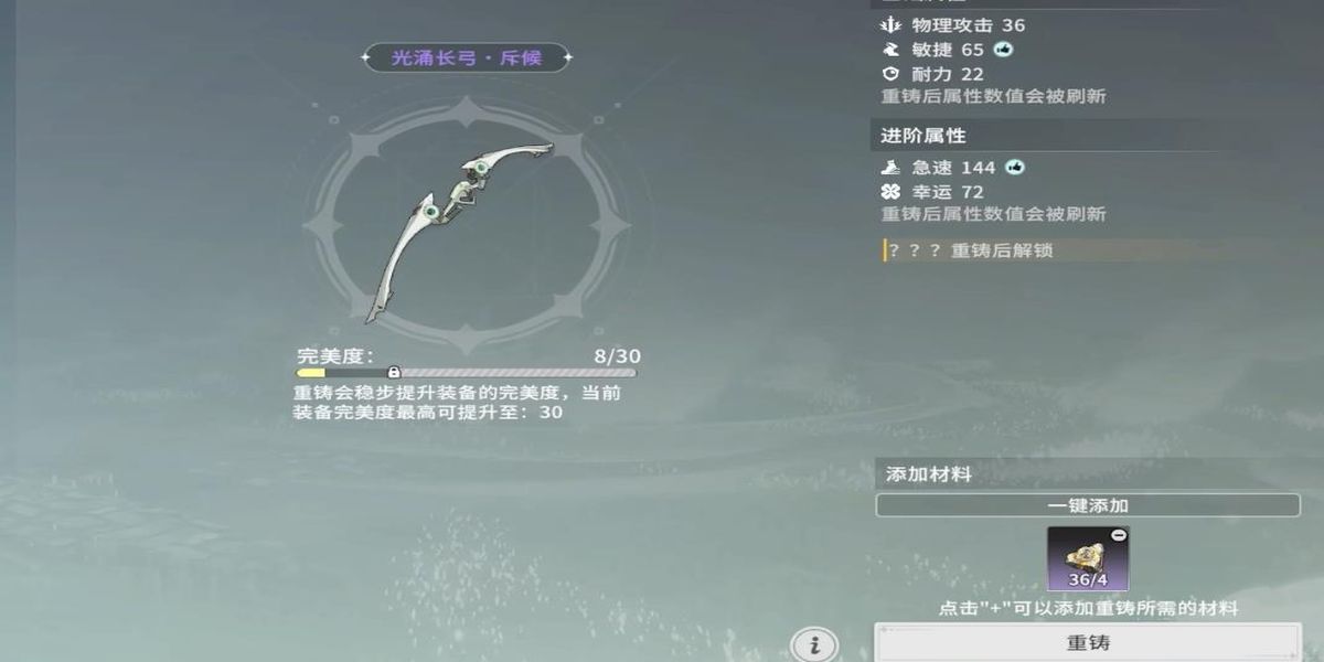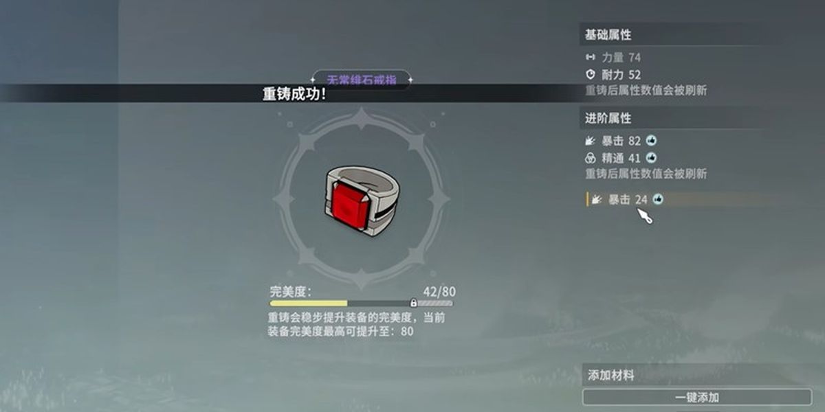 2、首次重鑄新裝備免費,重鑄后能提升裝備完美度,還會隨機獲得額外重鑄詞條,每次重鑄都會刷新該詞條,屬性數(shù)值完全隨機變動。