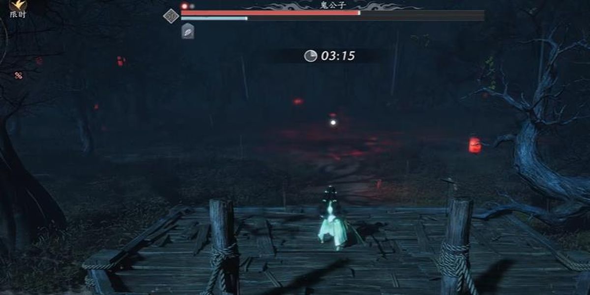 3、激活戰(zhàn)斗后往橋那邊跑,過程中有盾就及時套上,保持自身防護(hù)狀態(tài),避免被鬼公子的攻擊命中,同時為后續(xù)輸出創(chuàng)造安全環(huán)境。