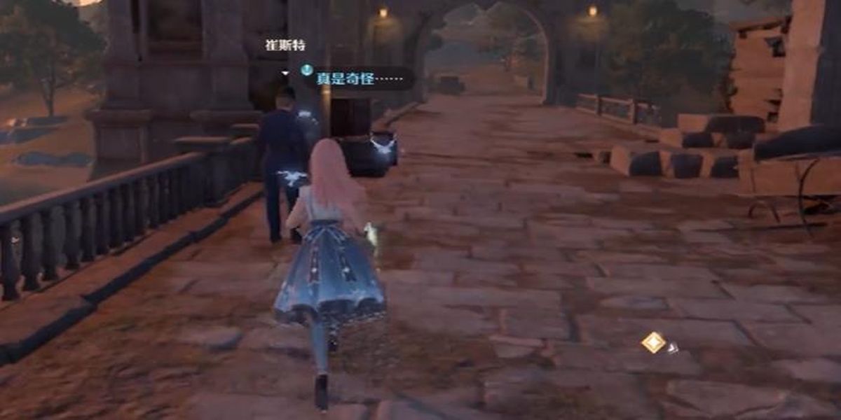 2、前往路燈處,與崔斯特對話后轉(zhuǎn)身向西北方向即小地圖左上角走,找到路燈后繼續(xù)前行穿過路燈,回頭可看到遠(yuǎn)處大橋右側(cè)有一盞壞掉的燈,這是關(guān)鍵元素。