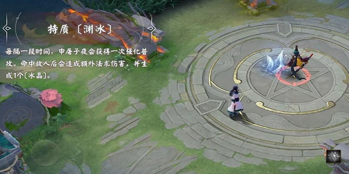 1、特質(zhì)淵冰每隔一段時間,申屠子夜會獲得強化普攻,命中敵人后造成額外法術(shù)傷害,還會生成1個冰晶,這是創(chuàng)造冰晶的基礎(chǔ)方式,可配合其他技能使用。