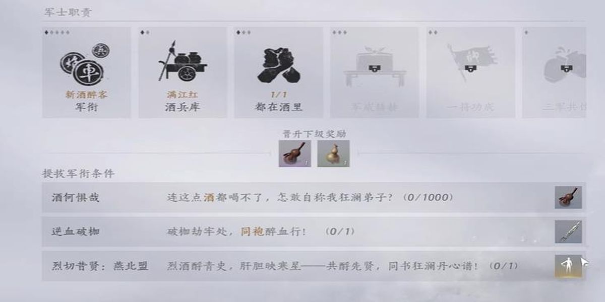 3、刷醉意值時需注意投壺一次加50,真貨商人的酒一次加90,合理利用這些方式能更高效地提升醉意值,助力順利完成狂瀾門派的晉升入門考核,更快融入該門派的傳承與發(fā)展中。