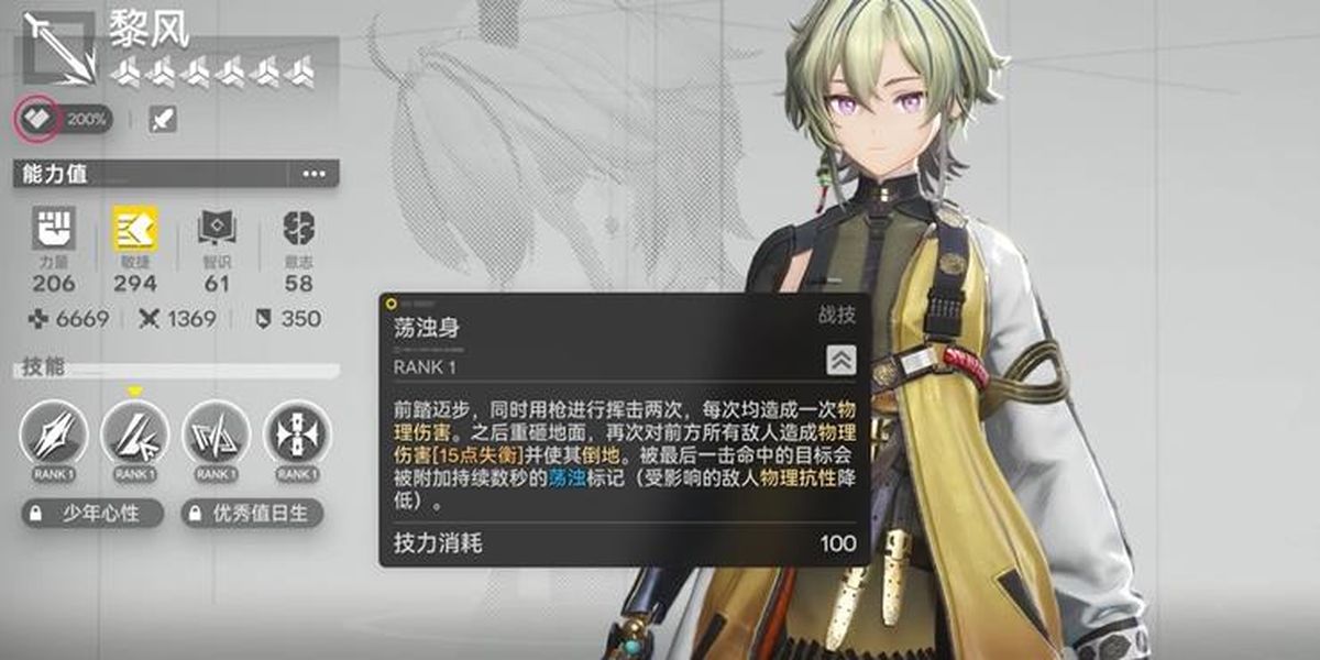 1、黎風(fēng)的普通攻擊使用長(zhǎng)槍進(jìn)行最多5段連續(xù)打擊,每次都能造成可觀物理傷害,作為主控干員時(shí)重?fù)纛~外附帶27點(diǎn)失衡效果,可讓敵人陷入混亂,為后續(xù)輸出創(chuàng)造條件。