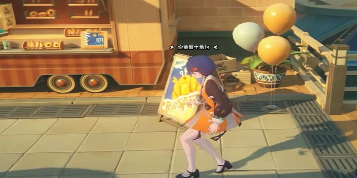 1、金黃蟹牛角包位于度假村中心廣場的面包店門口,外形帶有蟹鉗紋路很易辨識,玩家走近面包店附近區(qū)域,靠近后會出現(xiàn)明顯互動提示,與之互動即可完成該物品的相關(guān)要求。
