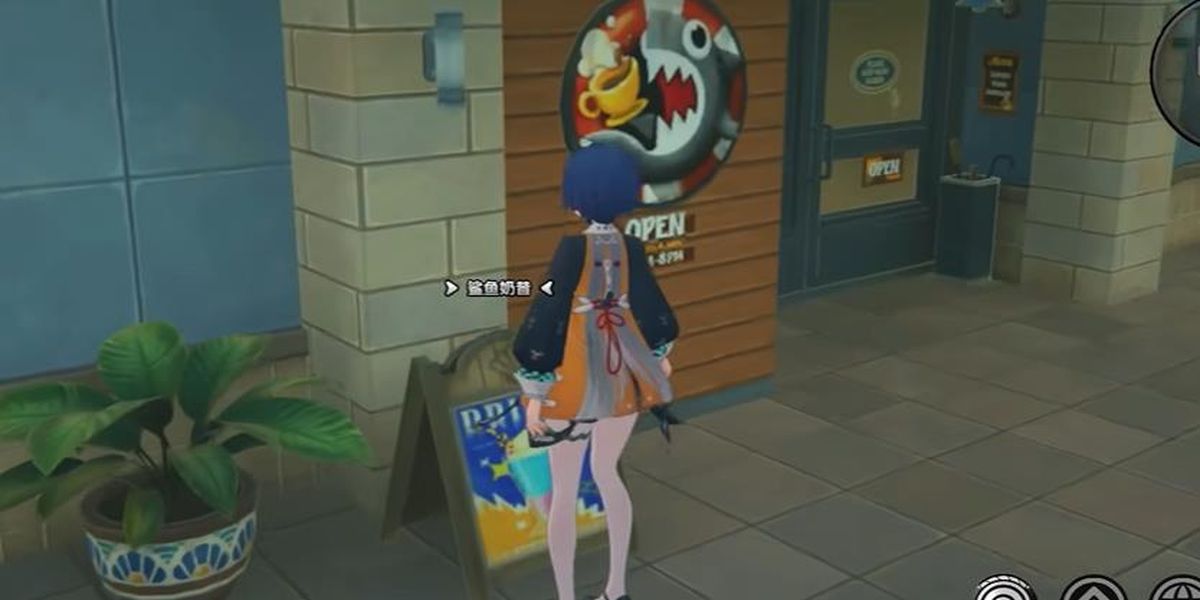 3、鯊魚奶昔廣告牌藏在度假村西側(cè)商業(yè)街的轉(zhuǎn)角處,畫著躍起的鯊魚圖案,因位置較為隱蔽難尋,需留意角落,找到并互動后,即可完成吃遍度假村成就。