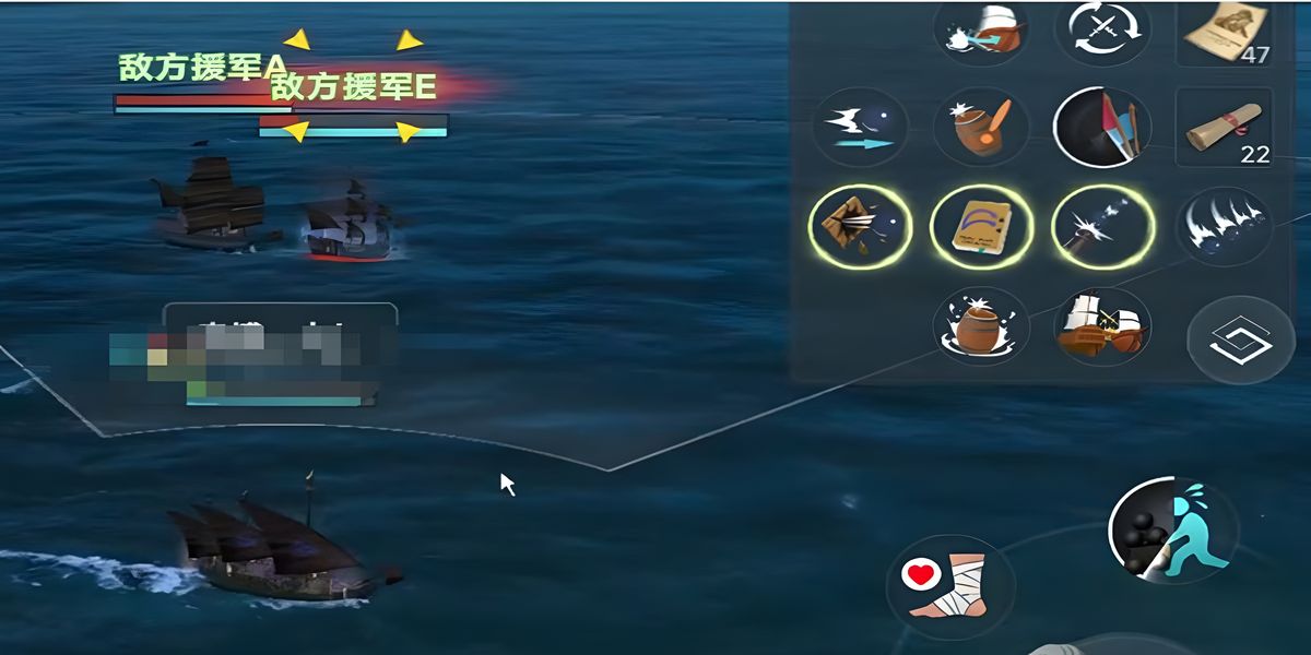 2、消滅5艘敵船后,可嘗試將兩艘距離較遠(yuǎn)的船只引到海邊,減少受到的傷害,剩下三艘船火力較弱,可直接發(fā)起進(jìn)攻,整個(gè)過(guò)程消耗15個(gè)行動(dòng)力。
