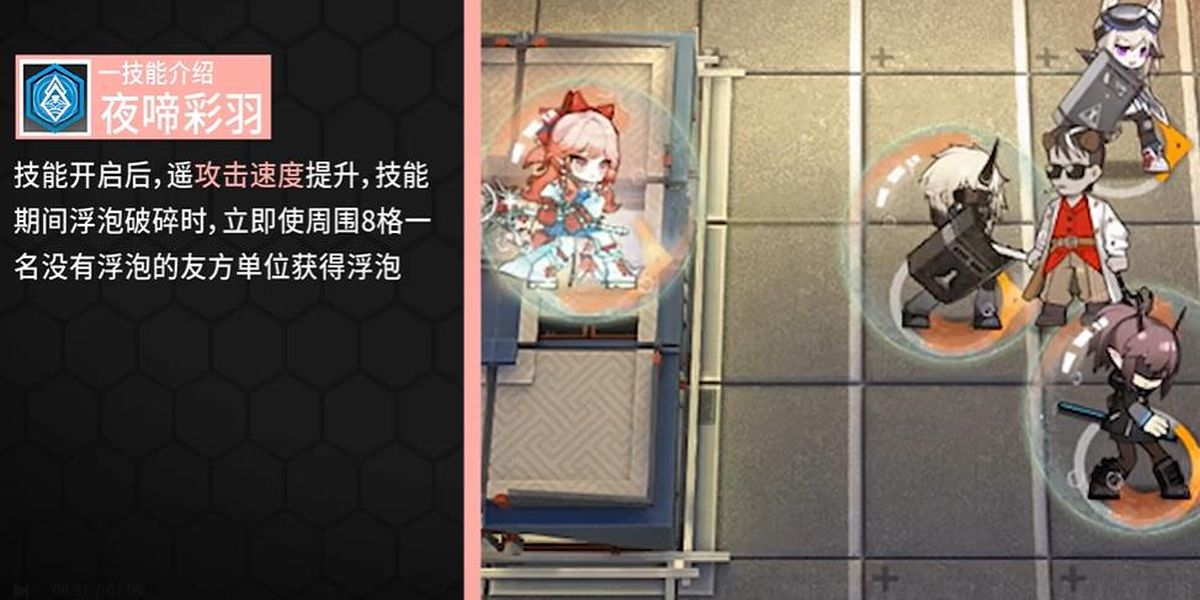 2、扶搖花火在浮泡破碎時,為擁有浮泡的隊友治療一定生命值,夜啼彩羽使自身攻擊速度上升,期間若浮泡破碎,立刻讓周圍8格內(nèi)一名無浮泡隊友獲得浮泡。