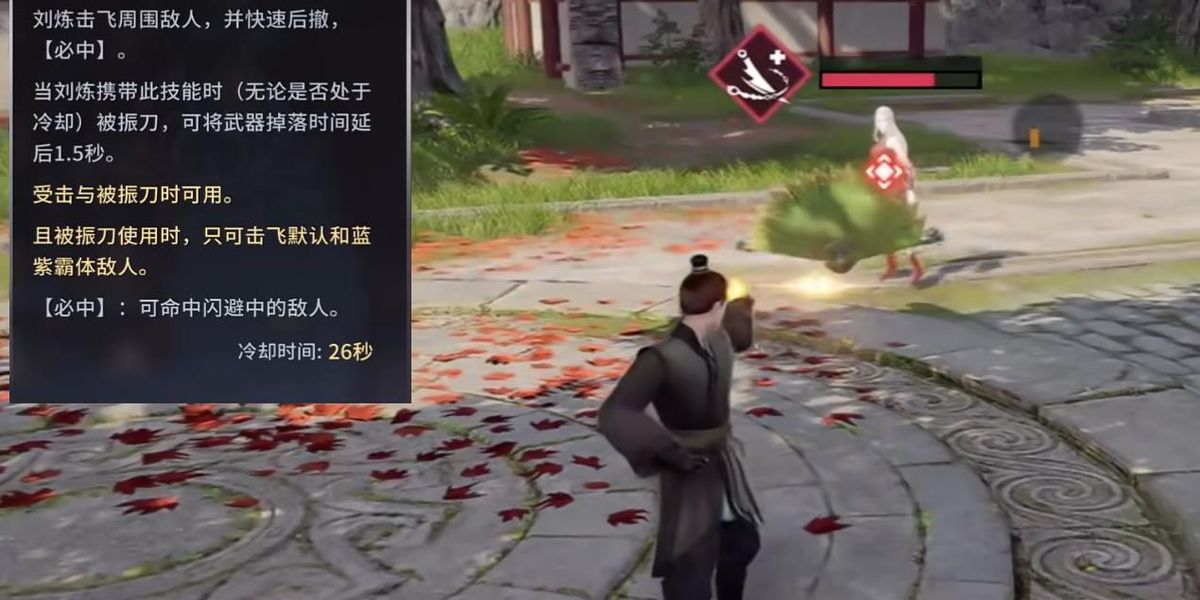 1、基礎(chǔ)技能馭金閃兼具進(jìn)攻與防守功能,發(fā)動時(shí)擊飛前方敵人,自身快速后撤脫離危險(xiǎn)區(qū)域,被振刀時(shí)使用可延緩敵人武器掉落時(shí)間,為后續(xù)反擊創(chuàng)造有利條件。