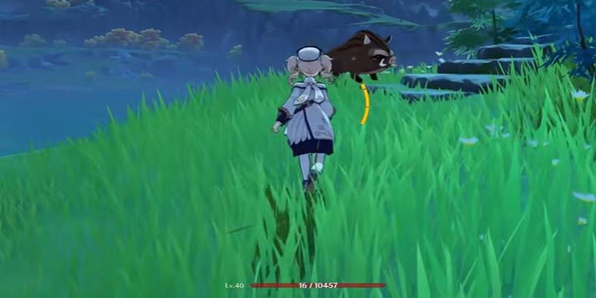 1、首先要壓低角色血量,可讓角色從高處跳下摔死,或站在火堆上掉血,之后食用提瓦特煎蛋回血,使角色血量控制保持在10點到150點左右,方便野豬一擊撞倒。