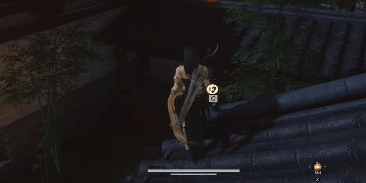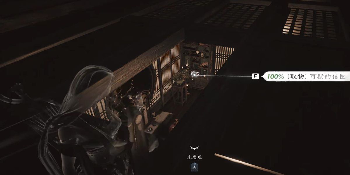 2、再推進(jìn)任務(wù)流程,用飛檐走壁躍上房頂偷聽對話,潛行潛入室內(nèi)避免被發(fā)現(xiàn),通過偷聽獲取關(guān)鍵信息,用隔空取物取得羅盤繡帕與信匣。