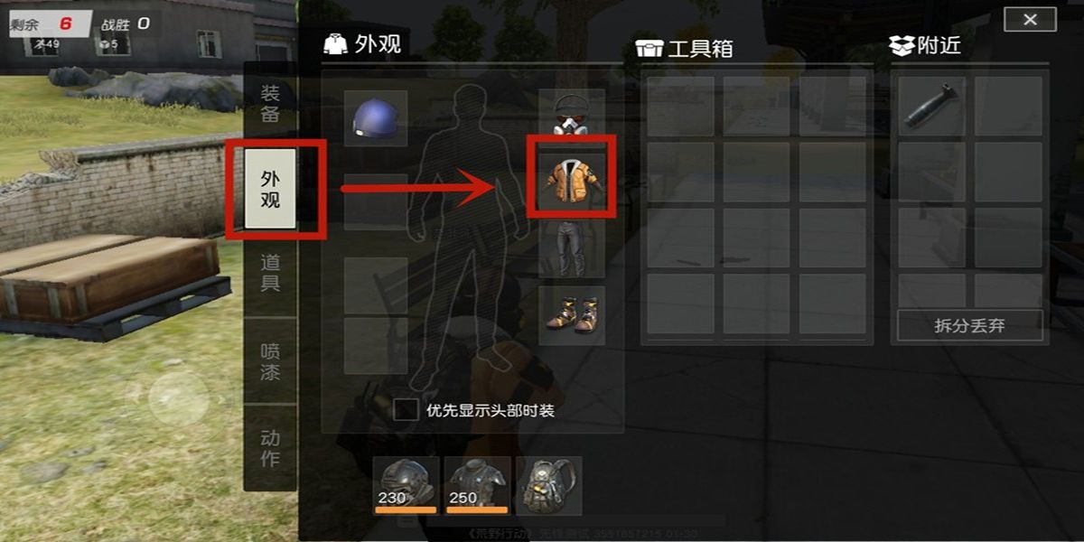 3、進(jìn)入游戲后打開(kāi)背包,選擇外觀欄,在右側(cè)列表找到外套選項(xiàng),通過(guò)拖拽操作去除當(dāng)前穿著的服裝,需注意拾取的外套只能穿一件,無(wú)法多帶。