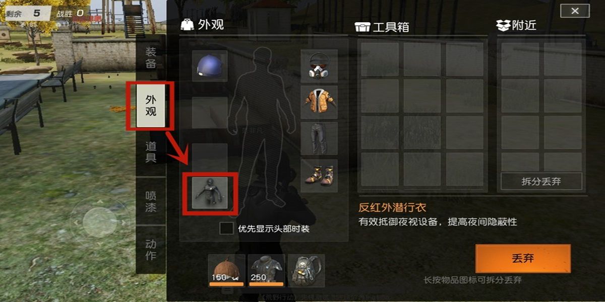 4、潛行衣和吉利服這兩種特殊外套,無(wú)需去除原有外套就能直接穿戴,會(huì)覆蓋原有外觀,通過(guò)空投獲取,能提供更好隱蔽性,適合伏擊戰(zhàn)術(shù)。