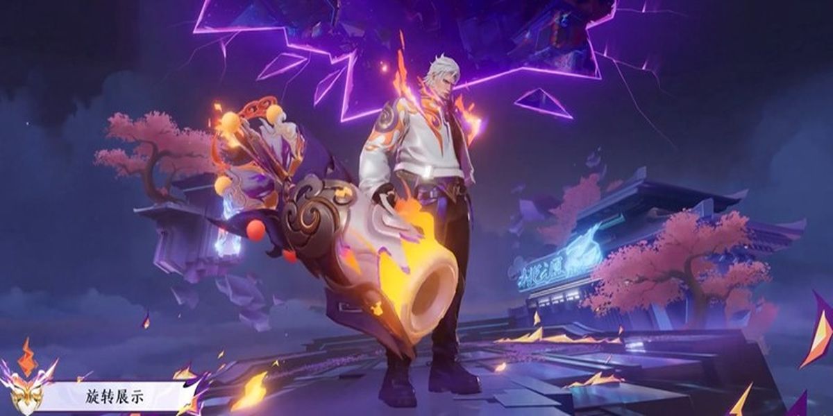 3、該皮膚局內(nèi)特效豐富,普攻帶金色光效,二技能架炮時地面現(xiàn)守字篆刻,大招開啟后炮臺為玄鐵材質(zhì),炮彈落地生成烽火狼煙特效,邊緣有城墻虛影。