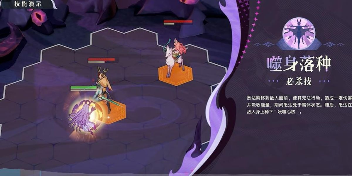 1、必殺技能瞬間突襲敵人,造成定身并吸取能量,在目標(biāo)身上植入心核印記,該印記周期性造成傷害并消耗能量,目標(biāo)被擊敗或再次釋放大招時(shí)心核掉落并造成額外傷害。