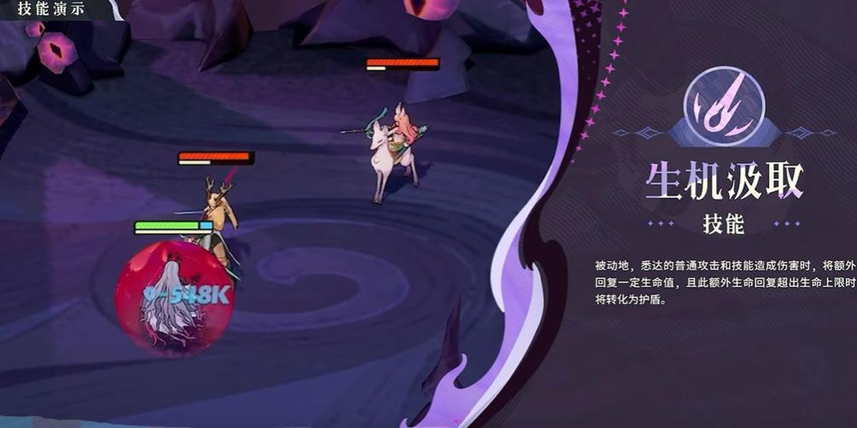 2、被動(dòng)技能生機(jī)汲取提供極強(qiáng)續(xù)航,普攻和技能傷害轉(zhuǎn)化為生命回復(fù),溢出治療量形成護(hù)盾,主動(dòng)技能血刺既能造成傷害,又能打斷敵方技能施放,限制對(duì)手行動(dòng)。