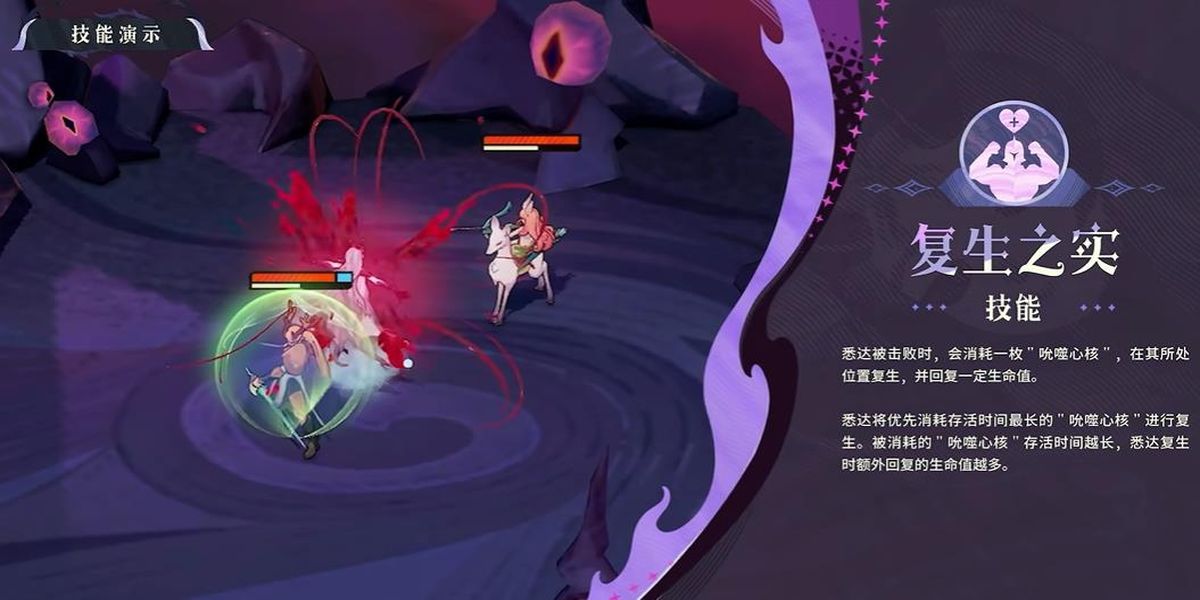 3、擁有獨(dú)特復(fù)生能力,被擊敗時(shí)消耗心核原地重生,恢復(fù)生命值與心核存活時(shí)間成正比,專屬技能投體生根縮短心核攻擊間隔并附加群體控制,強(qiáng)化其戰(zhàn)場作用。