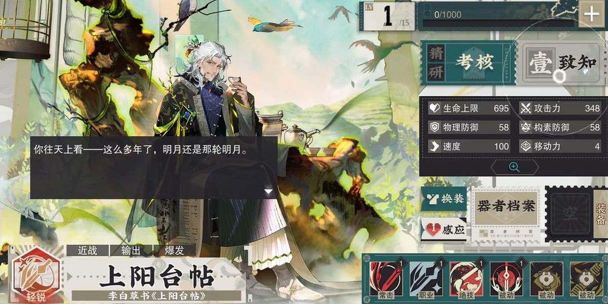 2、筆走龍蛇是核心輸出技能,疊加足夠buff后能造成爆發(fā)性傷害,云游四方提供移動速度加成,角色在戰(zhàn)場上更靈活,絕技揮毫潑墨有大范圍AOE傷害,適合對付隱匿樹妖這類敵人。