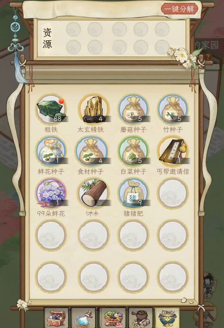 2、種植時(shí)優(yōu)先選白菜蘑菇竹子等高產(chǎn)種子,卡動(dòng)物養(yǎng)成可優(yōu)先種藥草和淬體草,澆水給非己作物能額外獲種子,每天10次祈福優(yōu)先選橙紫作物提升收益。