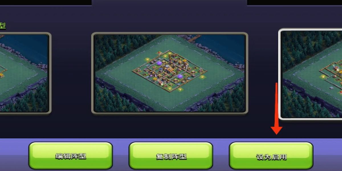 1、通過游戲界面操作,在部落沖突主界面,點擊對應(yīng)按鈕,從彈出菜單選陣型,再點復(fù)制陣型,選好戰(zhàn)爭基地及要復(fù)制陣型的場地,在合適區(qū)域選復(fù)制陣容。
