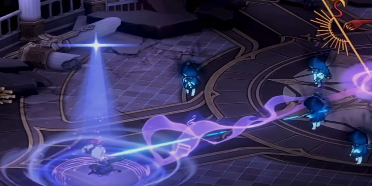 2、EX技能開演需6點COST,釋放后進入架槍狀態(tài),不可移動和普通攻擊,對敵人造成324%傷害,每穿一個敵人傷害降45%,共攻擊三次,最后一次傷害為680%且傷害固定。