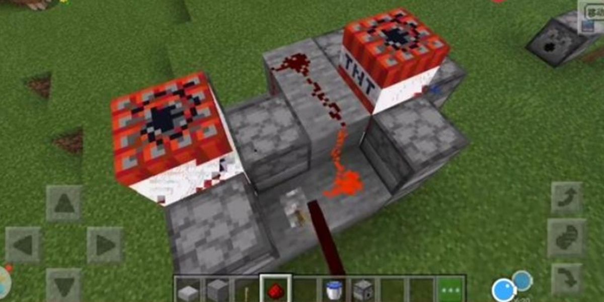 3、活塞推TNT大炮需先做高頻脈沖電路,將紅石線連活塞和發(fā)射器,活塞前放粘液塊,上方放發(fā)射器,粘液塊上方第二格放紅石塊,經(jīng)高頻脈沖快速推出,形成斜向下軌跡。