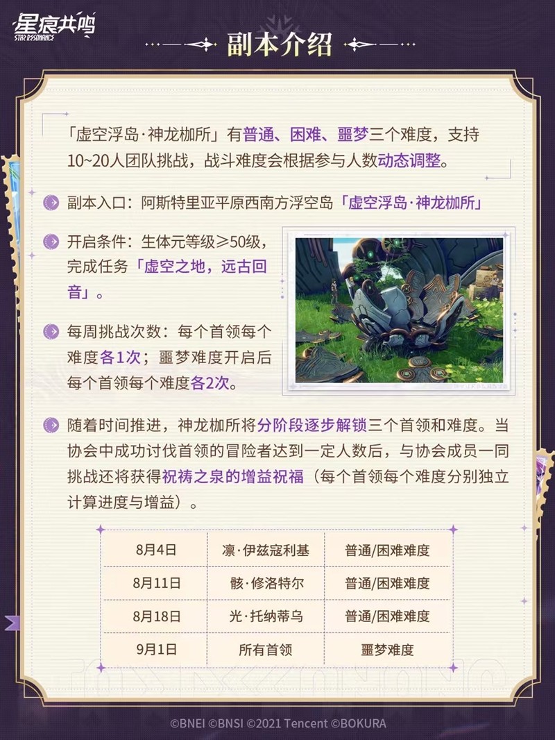 1、副本在阿斯特里亞平原西南方的浮空島,需生體元等級(jí)達(dá)50級(jí)完成前置任務(wù)虛空之地遠(yuǎn)古回音方可進(jìn)入,有普通困難噩夢(mèng)三個(gè)難度,支持10到20人團(tuán)隊(duì)挑戰(zhàn)且難度隨人數(shù)動(dòng)態(tài)調(diào)整。
