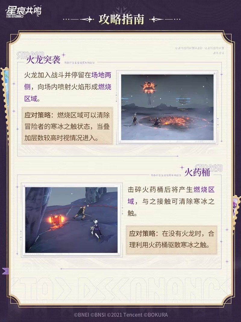 4、凜伊茲寇利基掌控冰元素,會(huì)用低溫攻擊和凍結(jié)技能,需應(yīng)對(duì)惡劣天氣影響,可利用火龍噴射的燃燒區(qū)域或擊碎火藥桶清除寒冰之觸,團(tuán)隊(duì)集中站位避免凍結(jié)并合理應(yīng)對(duì)各類技能。