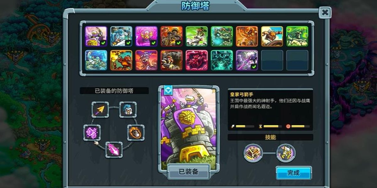 3、資金充足后,在右側(cè)出兵點附近放置奧術(shù)法師,后期可補充皇家弓箭手和圣騎士殿堂來增強防御,提升整體防守能力。