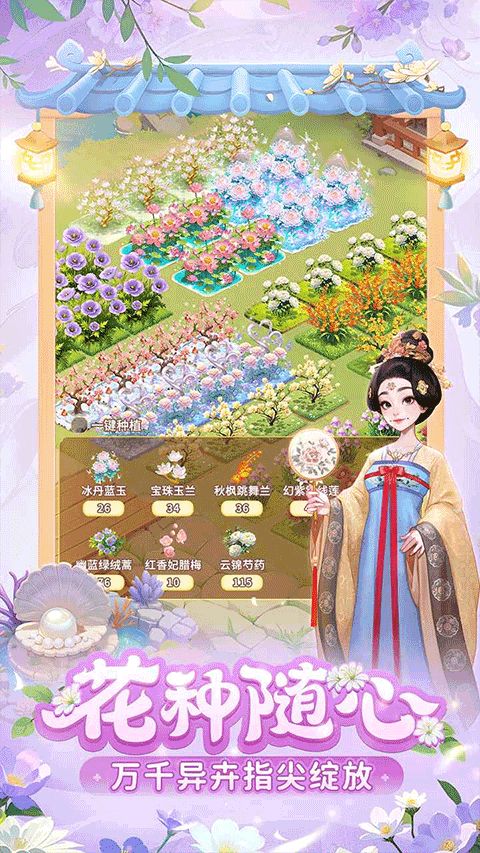 1、初始階段玩家僅有一套基礎(chǔ)服裝,傳統(tǒng)剪裁設(shè)計(jì)具古裝韻味且顏色素雅,前期資金難買高價(jià)服裝,需種植售賣花朵積累,稀有花種售價(jià)高可提供大量金幣,攢夠購買日常穿搭服裝。