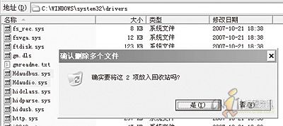 2.進(jìn)入“X:\windows\system32\drivers”目錄(X為系統(tǒng)盤盤符),刪除“Hdaudbus.sys”和“Hdaudio.sys”。