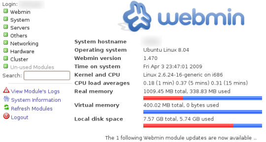 Webmin由不同的模塊組成,每個(gè)模塊執(zhí)行選定的任務(wù)。有查看系統(tǒng)狀態(tài)、配置grub、管理防火墻和協(xié)議、配置服務(wù)器等更多模塊(完整列表)。另外你可以根據(jù)自己的需求添加其他模塊,也可以使用Webmin的API和一些編程知識,為特殊的服務(wù)或者應(yīng)用創(chuàng)建自己的模塊。